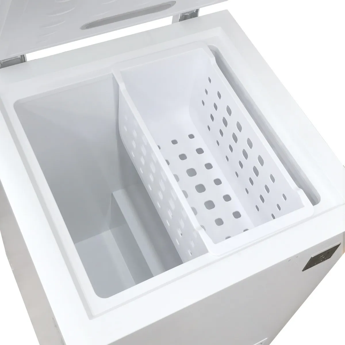 El Electrolux EFCC10C3HQW es un congelador horizontal compacto de 95 litros ideal para uso doméstico o comercial ligero. Su función dual permite alternar entre congelación profunda y refrigeración, y su panel de control manual externo facilita ajustar la temperatura según tus necesidades. Con función Turbo, podrás acelerar el proceso de congelamiento en intervalos cortos, mientras que la luz LED interna y la canastilla plástica hacen que la organización y visualización de los alimentos sea más cómoda. El equipo incluye ruedas de desplazamiento para moverlo fácilmente y está diseñado para ofrecer eficiencia energética (~15.6 kWh/mes) con clasificación de uso comercial. Con dimensiones compactas (54.5 × 55 × 85 cm) y bajo consumo, es una opción práctica y versátil para congelar y conservar tus alimentos de manera eficiente.
