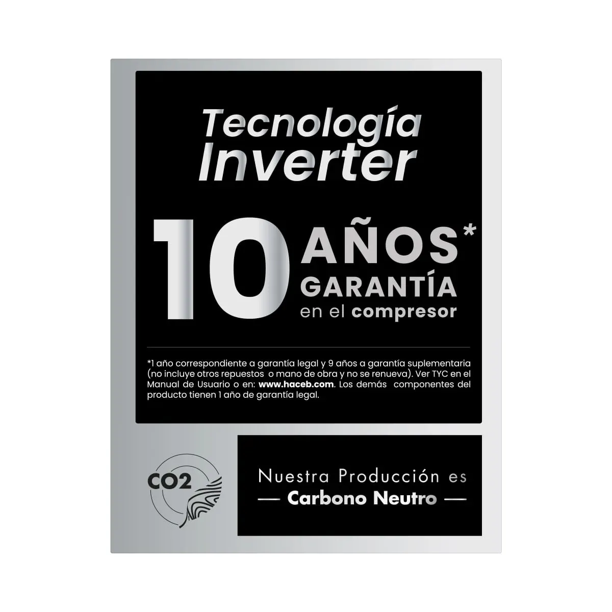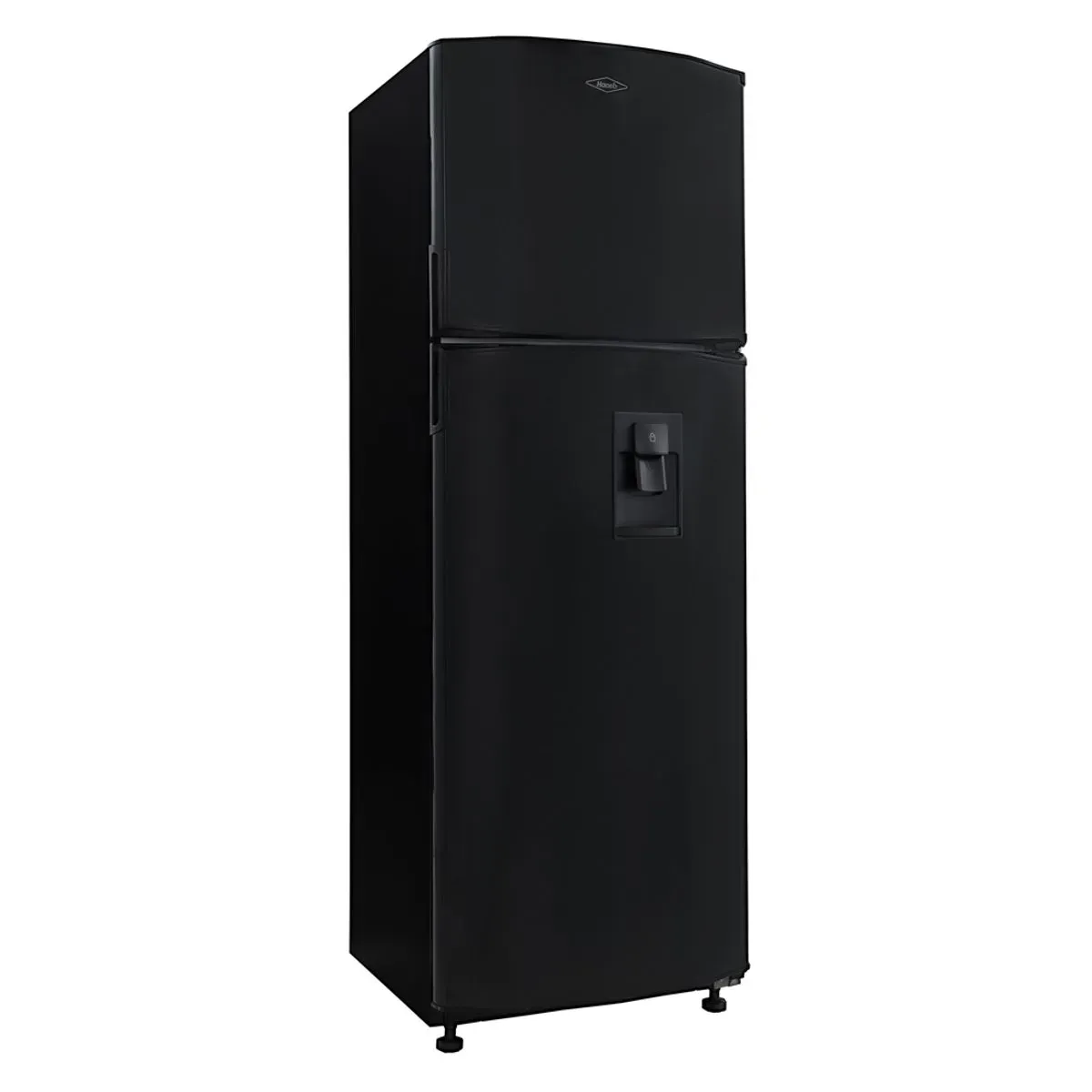 Nevera HACEB de 294 litros color negro, tecnología No Frost, diseño de congelador superior, eficiencia energética A y funcionamiento inverter ideal para el hogar.
