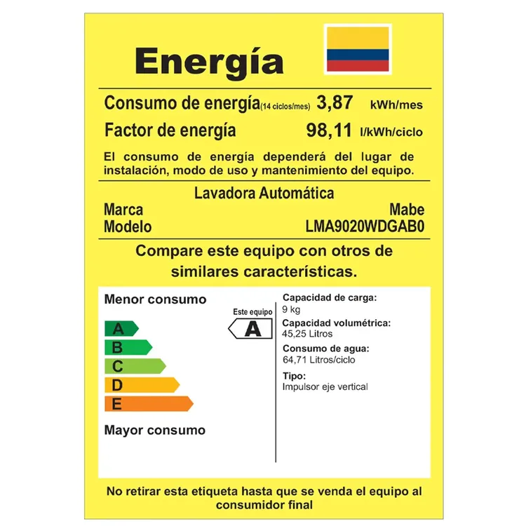 Es una lavadora de carga superior con una capacidad de 9 kg (20 libras) ideal para hogares pequeños o medianos. Cuenta con varias características que la convierten en una excelente opción para quienes buscan una lavadora eficiente, económica y fácil de usar.