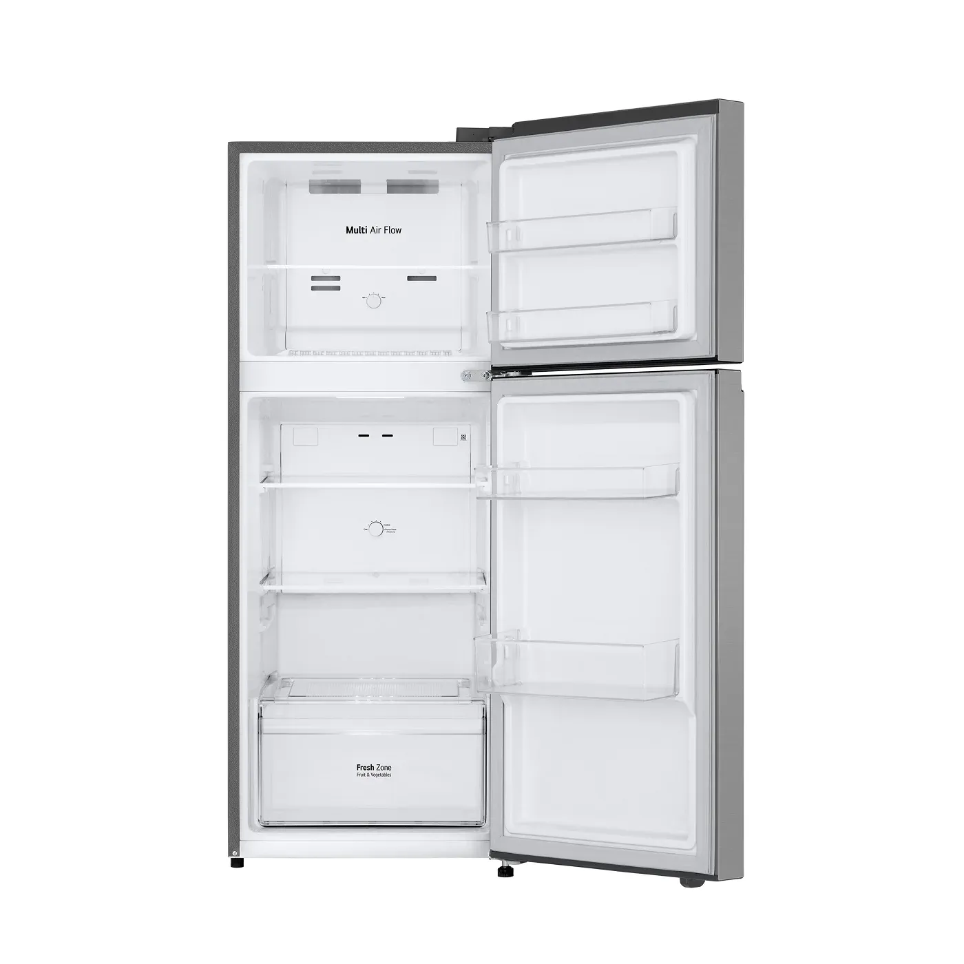 Nevera LG VT22BPY Top Freezer de ≈ 217 L con tecnología No Frost, Smart Inverter, Multi Air Flow y LinearCooling™, bandejas de vidrio templado e iluminación LED — sin dispensador de agua ni fabricador automático de hielo.