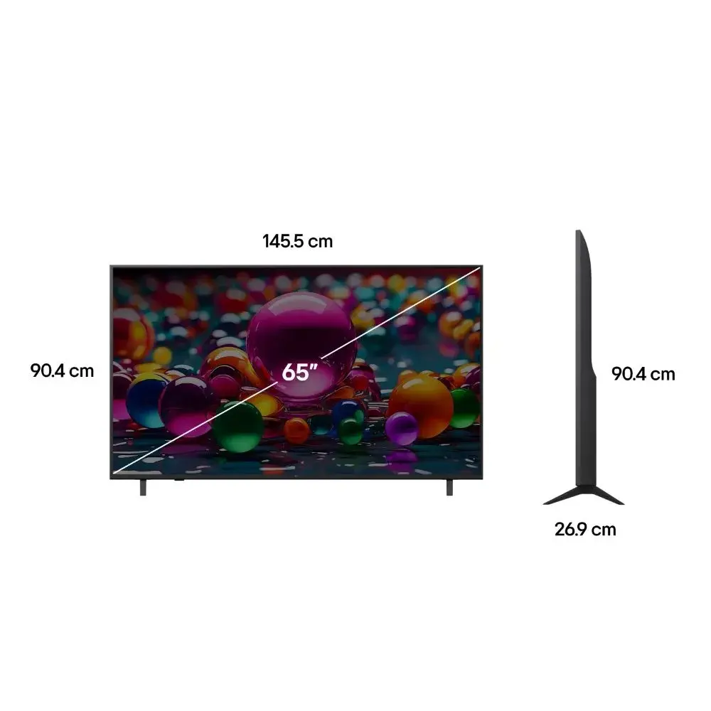 LG 65″ UHD 4K Smart TV 65UA8000PSB.AWC con procesador Alpha 7 AI Gen8, webOS, conectividad Wi-Fi/Bluetooth, 3× HDMI y 1× USB, e imágenes 4K vibrantes con HDR10 Pro.