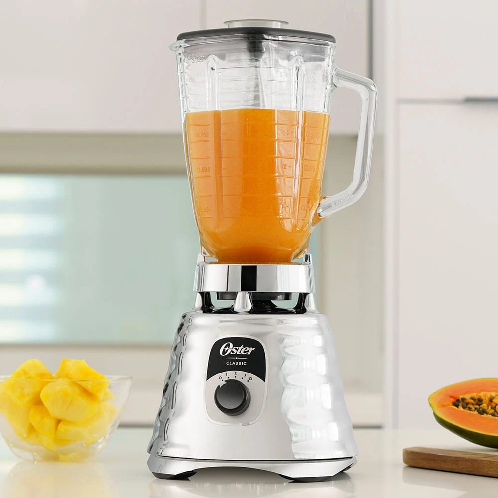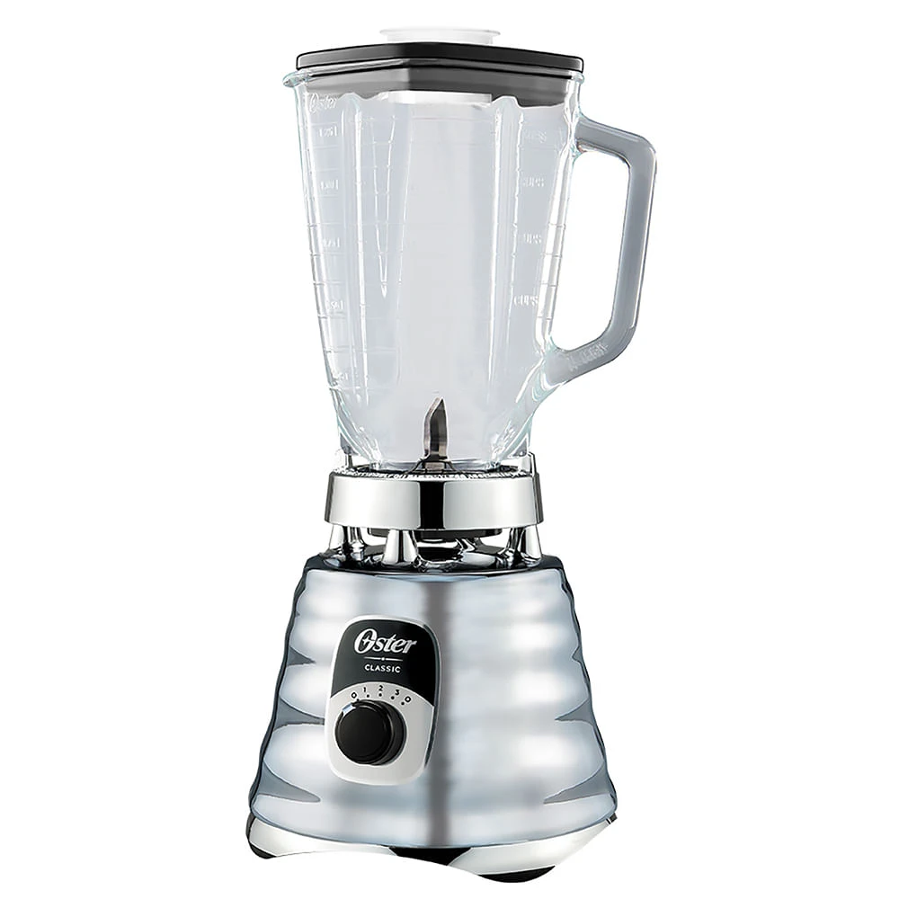 Licuadora cromada de 700 W con 3 velocidades, vaso amplio y cuchillas de acero inoxidable — potencia y versatilidad para licuados, jugos y mezclas diarias.