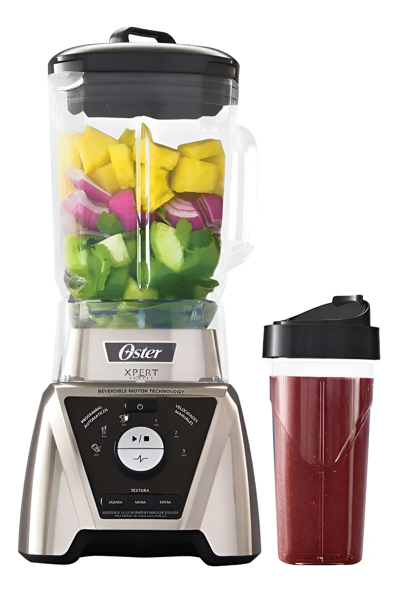 La licuadora Oster® Xpert Series™ niquelada combina diseño elegante con desempeño potente para preparar jugos, smoothies, sopas y mezclas densas con facilidad. Equipado con un motor de alta potencia de hasta 1100 W y tecnología de motor reversible, este modelo permite un licuado más uniforme y eficiente, con control de textura ajustable entre espesa, media y líquida.