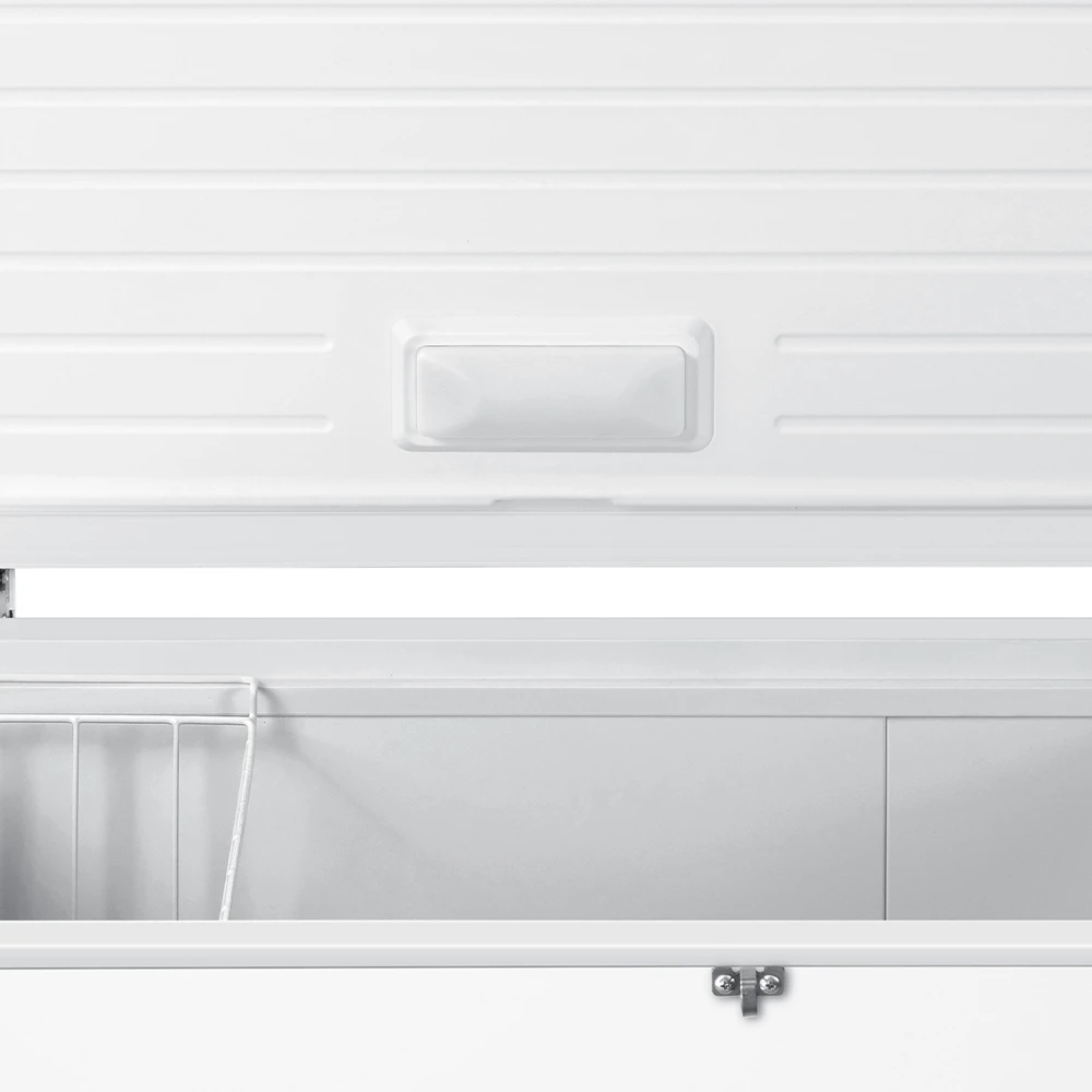 Incluye luz interior LED para visibilidad fácil, seguro de puerta con llave para almacenamiento seguro, 2 canastillas internas para organización, ruedas para movilidad y tapón de drenado para limpieza sencilla. El control de temperatura es manual externo, permitiendo ajustes rápidos según el nivel deseado de congelamiento. Con consumo estimado de ≈ 44.9 kWh/mes, este congelador combina eficiencia, confiabilidad y diseño práctico para uso doméstico o comercial.
