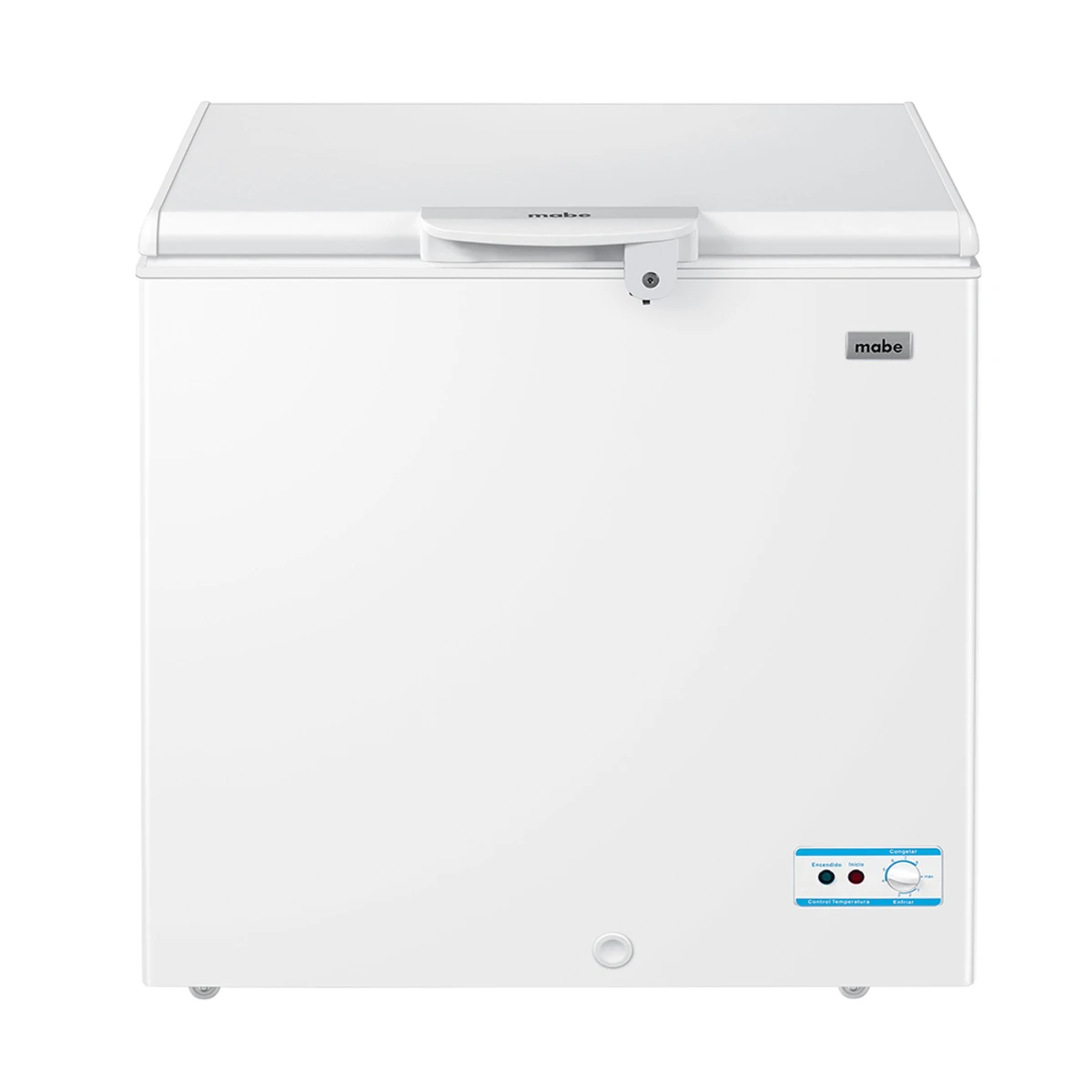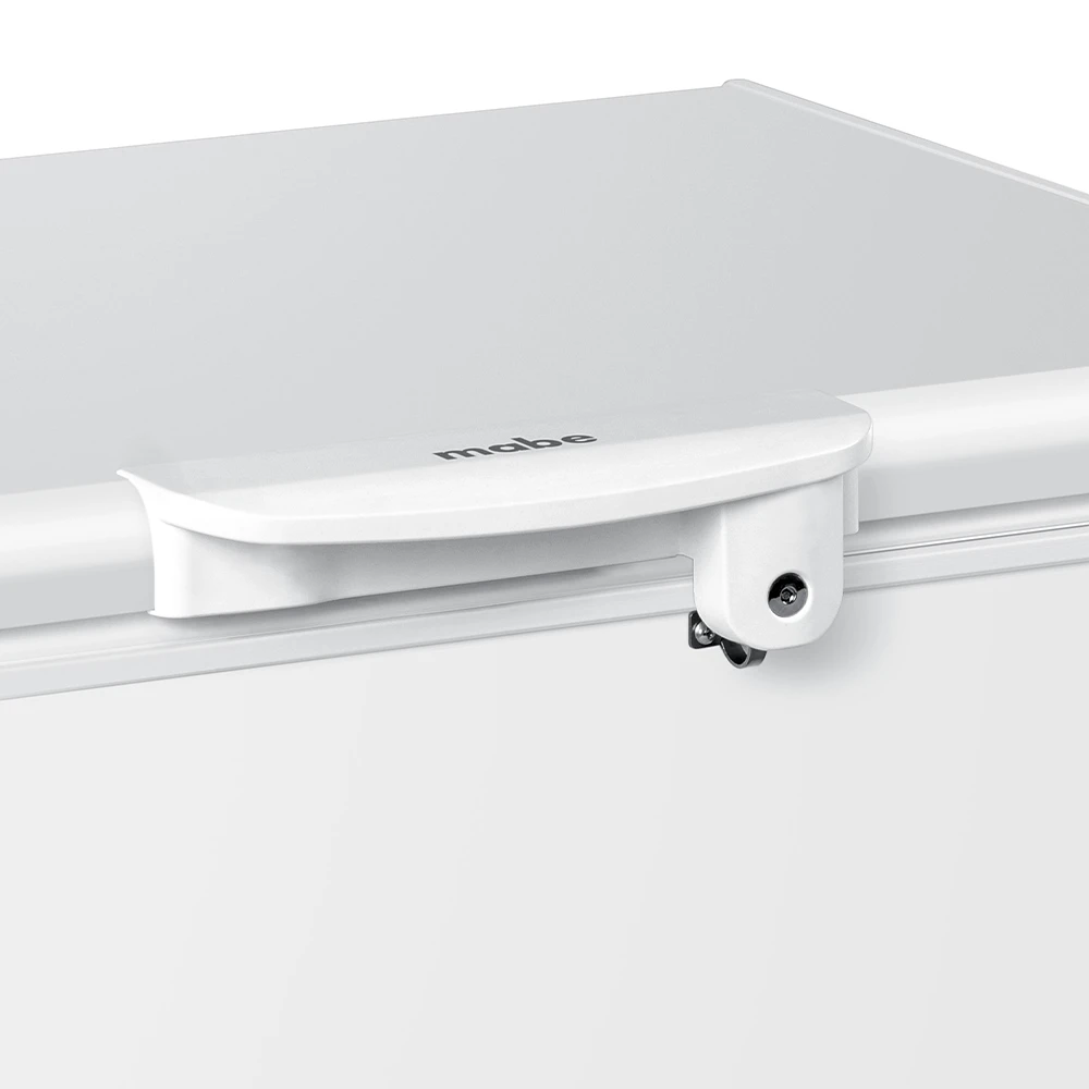 Congelador horizontal Mabe ALASKA195BH1 de ≈ 198 L con tecnología Cold Extra 150, triple función (enfriar/congelar/mantener), refrigerante ecológico R600a, luz LED interna, seguro con llave y consumo estimado de ≈ 44.9 kWh/mes.