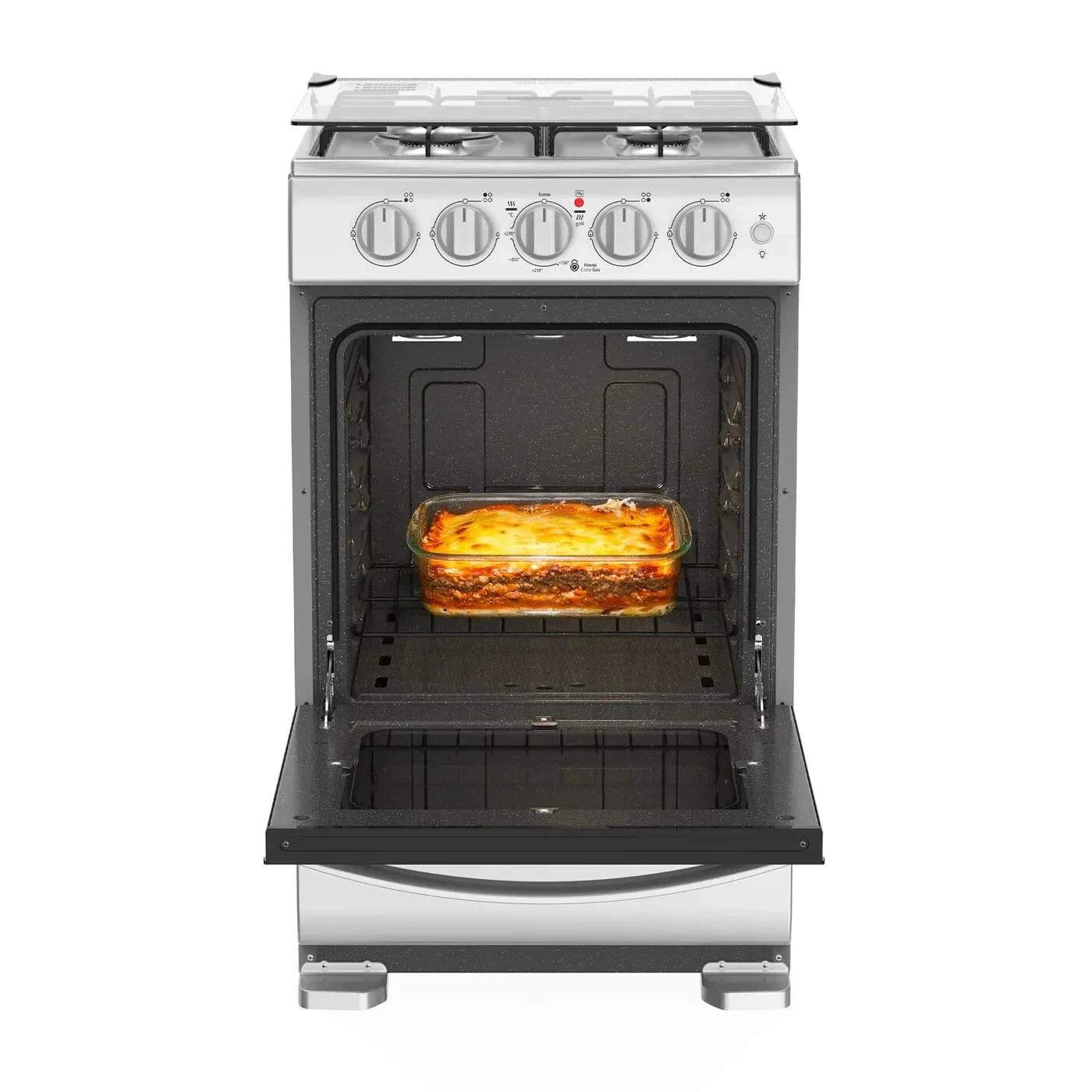 En el área del horno, este modelo ofrece 63 litros de capacidad, encendido electrónico, grill superior eléctrico y funciones para calentar, dorar y gratinar. Además, incluye recubrimiento Easy Clean Pro y tecnologías como Ultimate Cooking / Perfect Cook, orientadas a una mejor distribución del calor y una limpieza más sencilla. También cuenta con válvula de seguridad en el horno, aportando mayor tranquilidad en el uso diario.