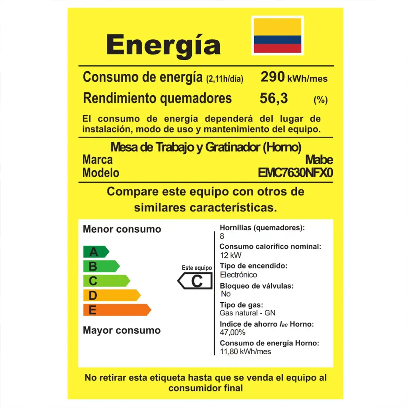 Con eficiencia energética A y el respaldo de la marca Mabe, esta estufa es una excelente opción para quienes buscan rendimiento, espacio y confiabilidad.