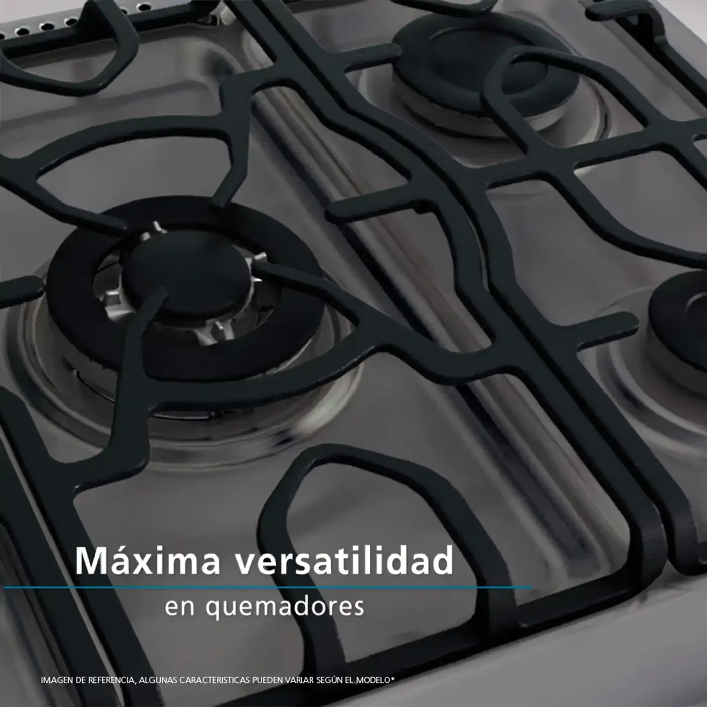 Su horno a gas permite una cocción uniforme, mientras que la tapa superior y las parrillas resistentes ofrecen mayor seguridad y comodidad. El acabado inoxidable aporta durabilidad, fácil limpieza y un estilo moderno que se adapta perfectamente a cocinas amplias.