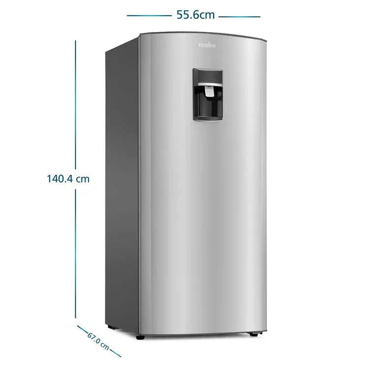 Nevera Mabe RMU235NACU 229 L Inox – Una puerta, acero inoxidable, dispensador de agua de 2 L, estantes de vidrio templado, tecnología Frost y eficiencia Clase A.