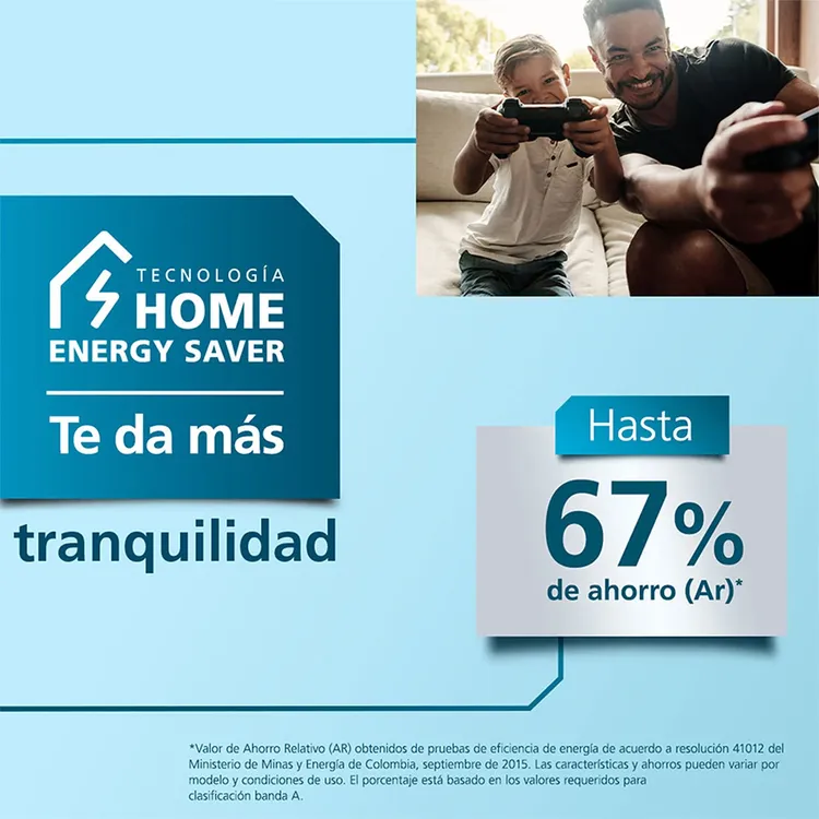Este modelo cuenta con función dual refrigerador/congelador, ofreciendo 198 L en refrigeración y 31 L en congelación. No posee panel digital, sino control manual mediante perilla. Funciona a 110 V / 60 Hz y consume aproximadamente 17.4 kWh/mes.