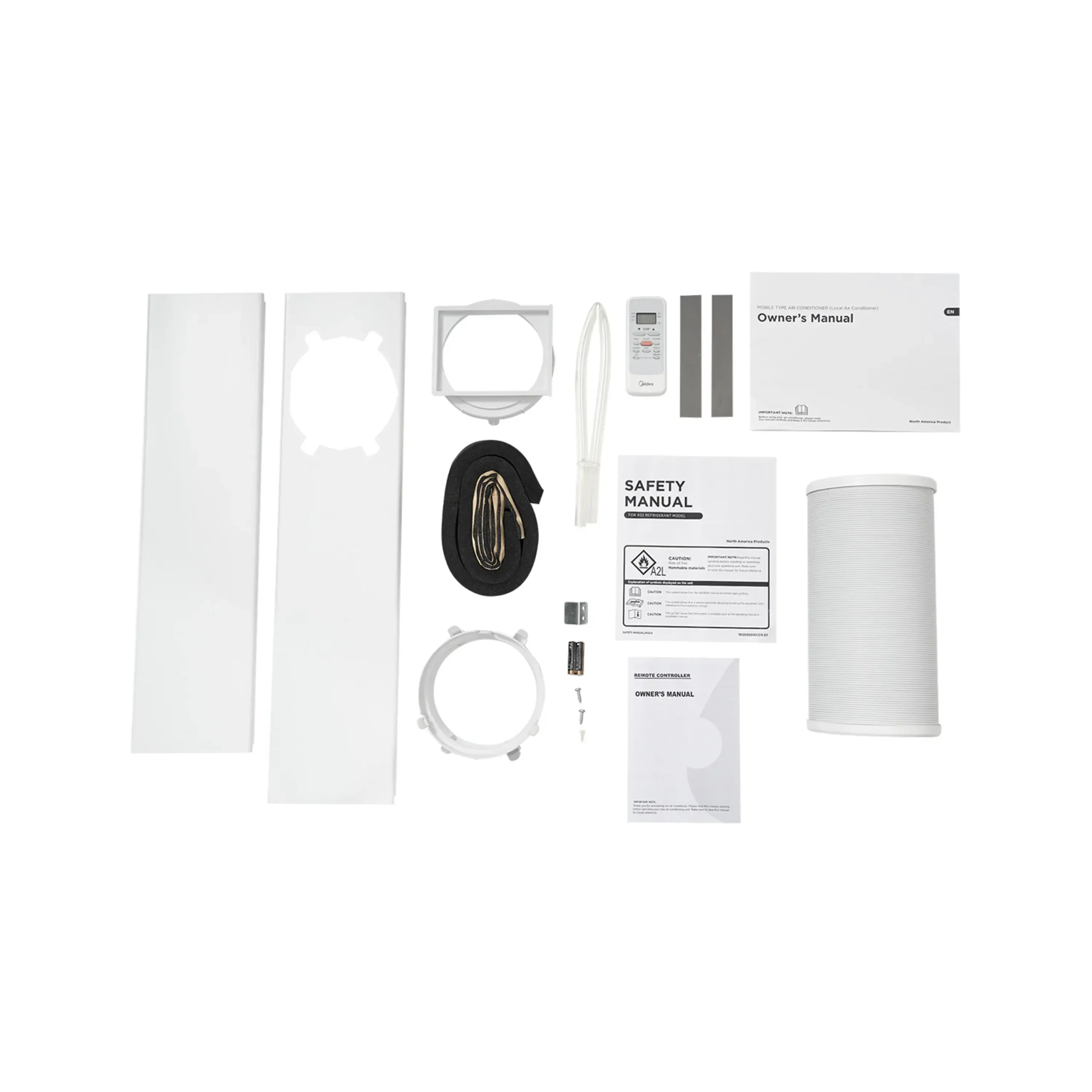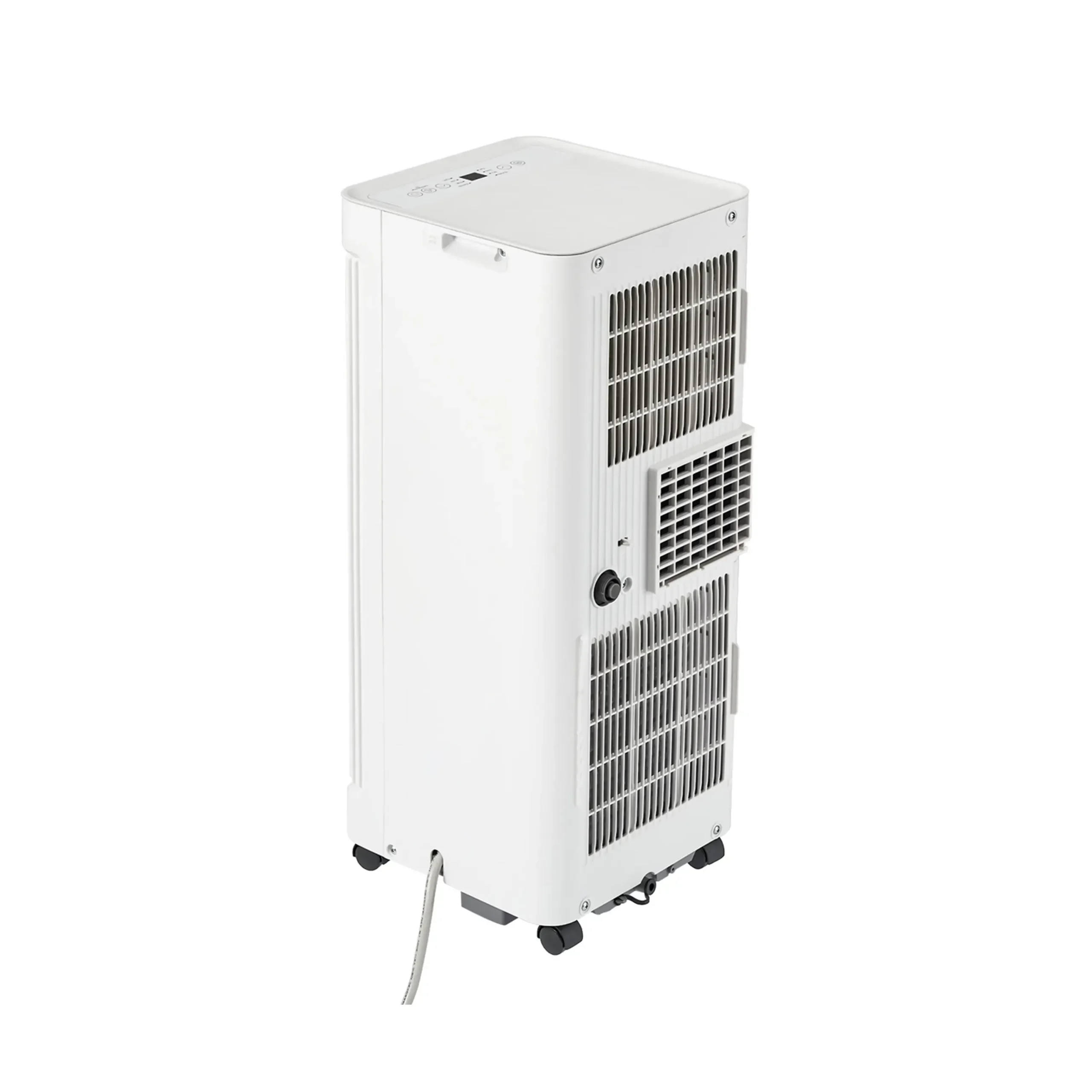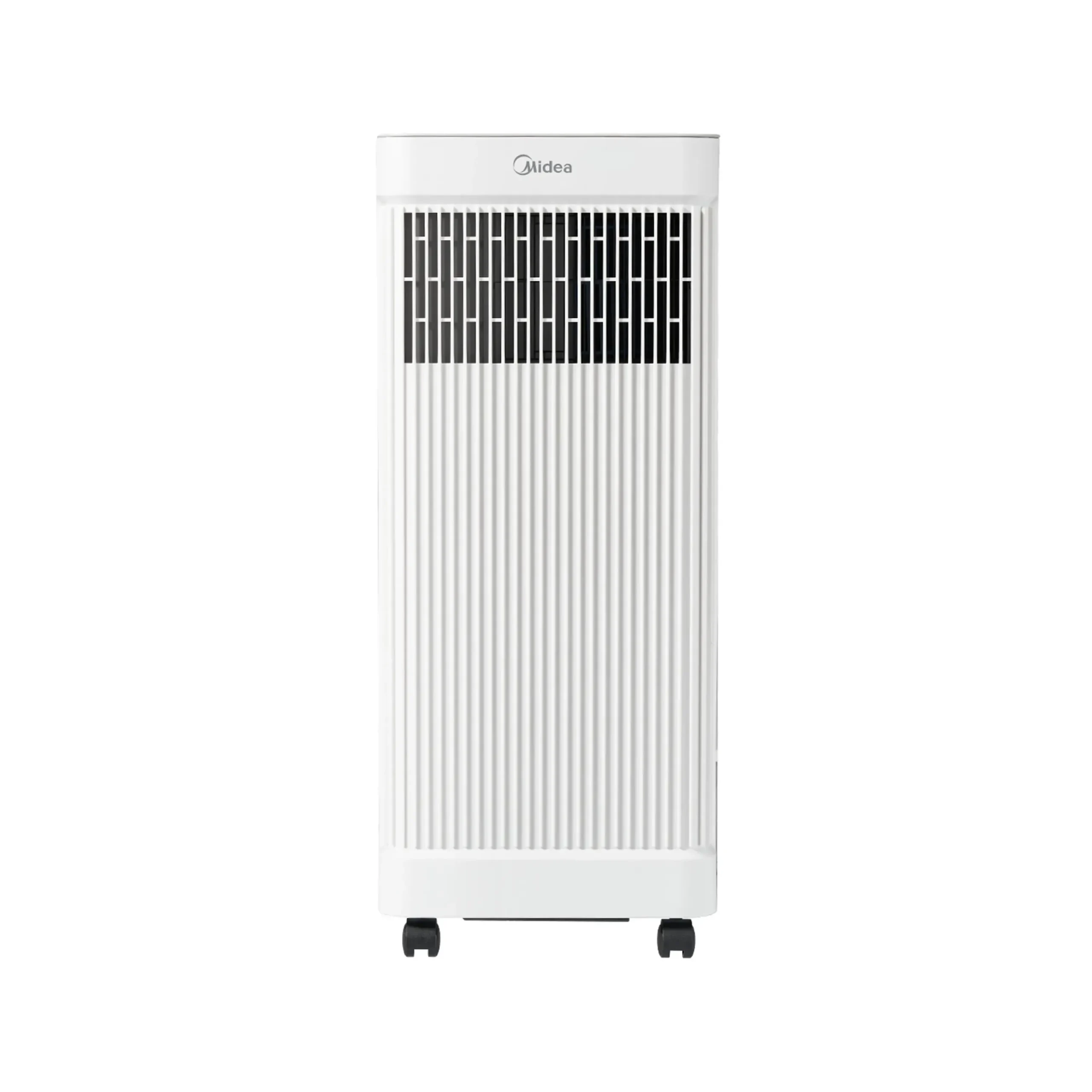 Aire acondicionado portátil Midea MPPA-12CRN8-BCF9-CO de 12 000 BTU, 110 V, refrigerante R32, con 3 velocidades, temporizador 24 h, modo nocturno y ruedas 360° para fácil movilidad. Solución práctica para enfriar espacios residenciales medianos.