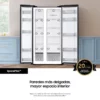 El Samsung RS57DG4000B4CO es un nevecón Side by Side de 583 litros enfocado en capacidad, eficiencia y tecnología. Su diseño con SpaceMax™ permite interiores más amplios sin aumentar dimensiones externas. Equipado con compresor Digital Inverter AI y la función AI Energy Mode, se adapta al uso diario para ahorrar hasta un 10 % de energía vía SmartThings. La refrigeración es uniforme y constante gracias a su sistema Mono Cooling junto con funciones Power Cool y Power Freeze. Su sistema No Frost evita escarcha, y cuenta con alarma de puerta abierta, luz LED interior y bandejas de vidrio templado ajustables.