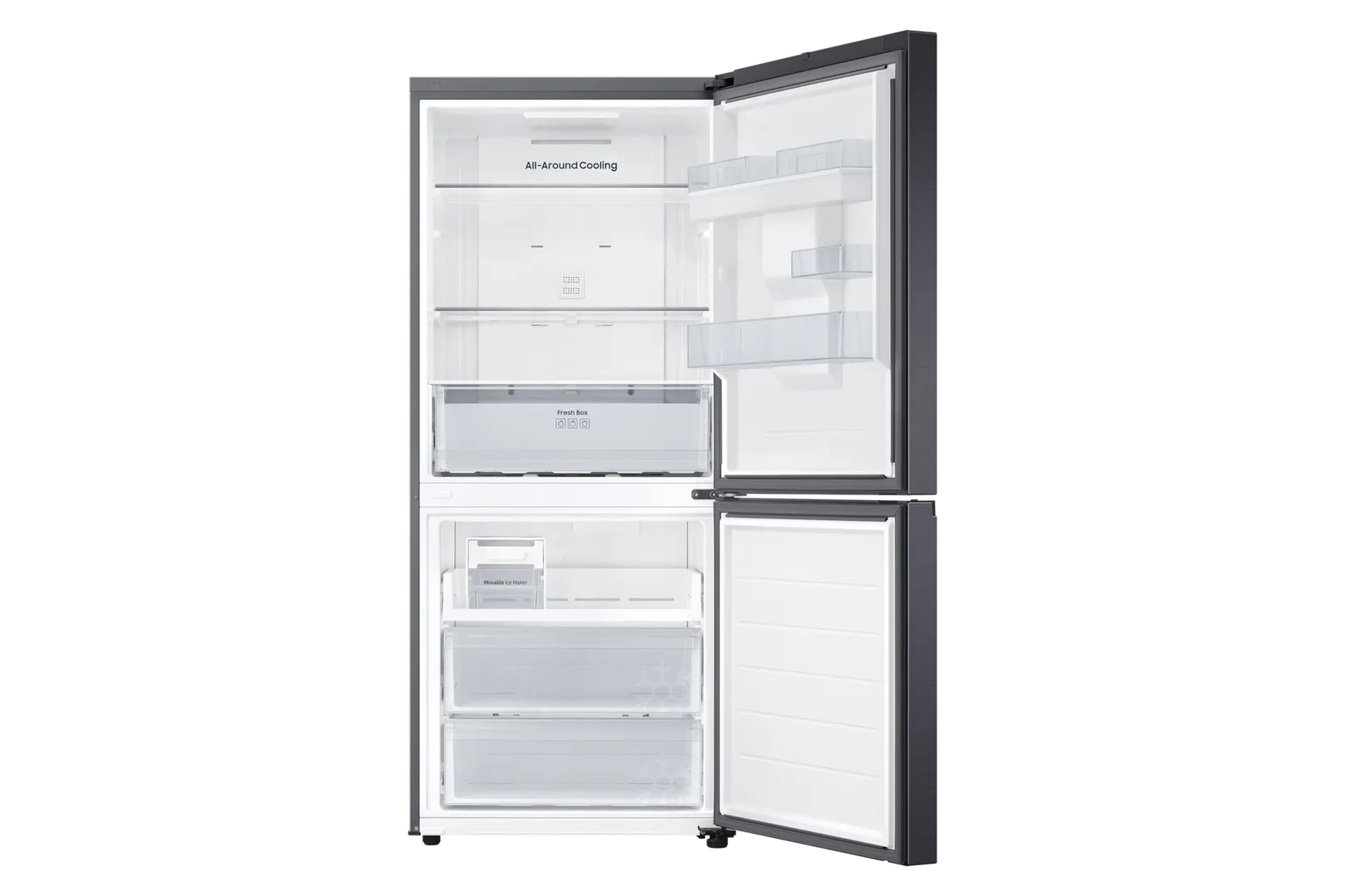 La SpaceMax™ Technology optimiza el espacio interior sin aumentar las dimensiones externas, mientras que el sistema All-Around Cooling mantiene temperaturas uniformes para conservar frescura. Con Power Cool y Power Freeze, puedes enfriar o congelar rápidamente según tus necesidades.