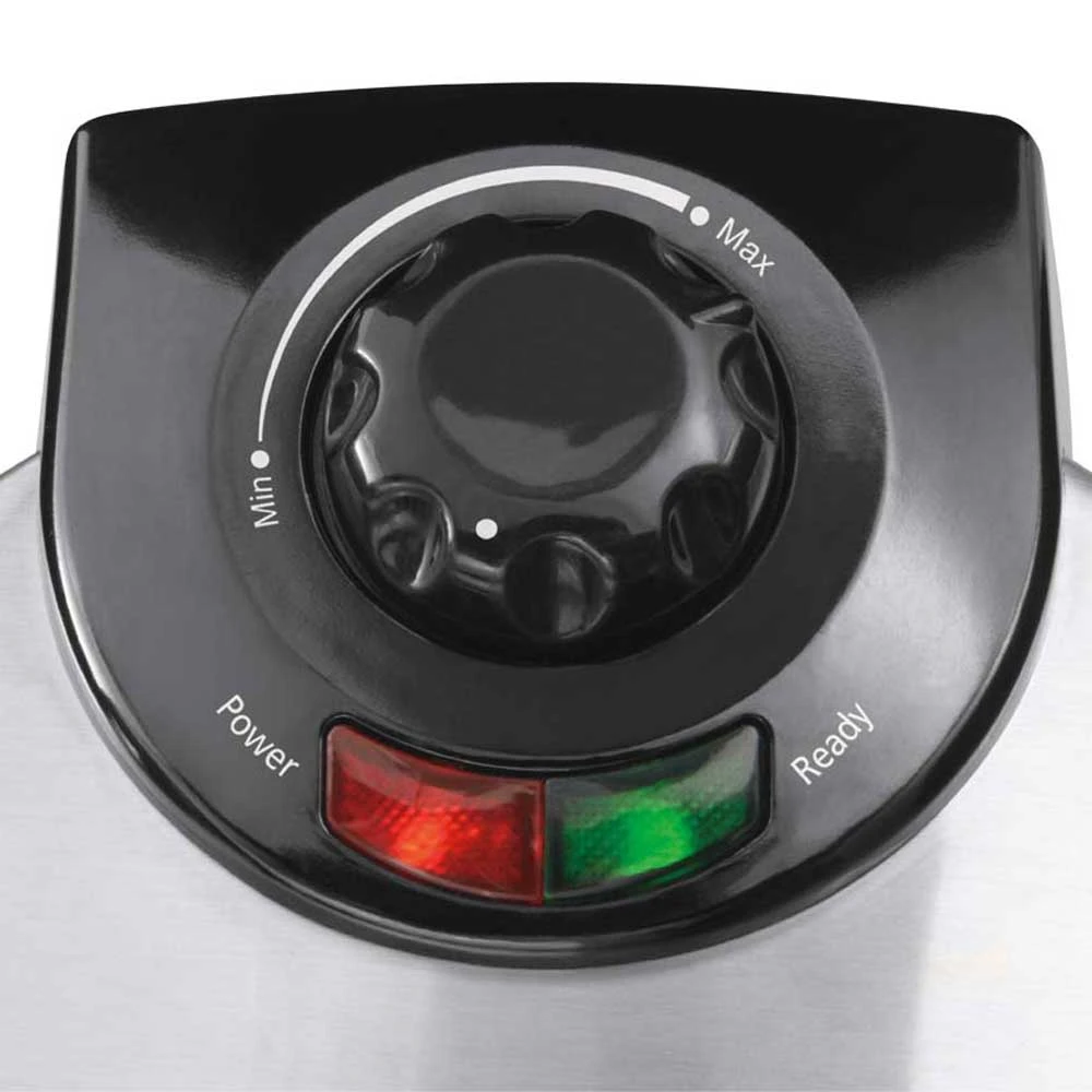 La waflera belga antiadherente 4 rebanadas es un electrodoméstico práctico y potente para preparar waffles estilo belga en casa para toda la familia. Equipada con ≈ 1200 W de potencia y una perilla de control de temperatura ajustable, permite seleccionar el nivel de dorado ideal para cada gusto. Las luces indicadoras te guían durante el proceso de cocción, indicando cuándo el aparato está listo y cuándo los waffles están listos para servir.